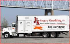 Welcome to J & K Secure Shredding, LLC. We offer secure, reliable on-site document shredding services to businesses in Philadelphia, PA, Wilmington, DE, Cherry Hill, NJ, Media, PA and the surrounding areas. Our goal is to provide our customers with the best service in the industry with flexible service for shredding documents according to the schedule that best fits the needs of your company.